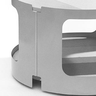 Tavolino con 2 piani, caratterizzato dalla struttura  costituita da 2 scocche in acciaio verniciato, aventi identiche dimensioni e caratteristiche.