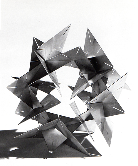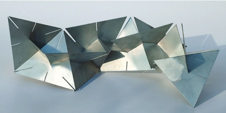 L’unione di più pezzi tramite i tagli sui vertici consente la realizzazione di un “corpo” chiuso a forma fissa (fig.1).