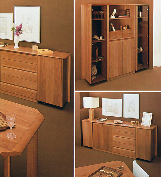 La serie comprende “pezzi” per soluzioni d’arredo della zona giorno, zona notte, e lo
