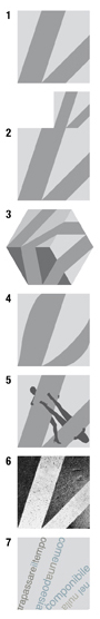 SEMPLICE RIDIMENSIONA-MENTO E PROGRESSIONE TRIDIMENSI-ONALITA’ DEFORMAZIONE INTRUSIONI FOTOGRAFIA PAROLE Concept: il principio che in modo funzionale regola e determina l’ordine costruttivo con cui vengono ad identificarsi le opere è quello che si potrebbe definire, in generale, di espansione di un unico “segno” in uno spazio inglobante situazioni ed ipotesi diverse e fortemente ispirato e caratterizzato dalla continua ripetitività.